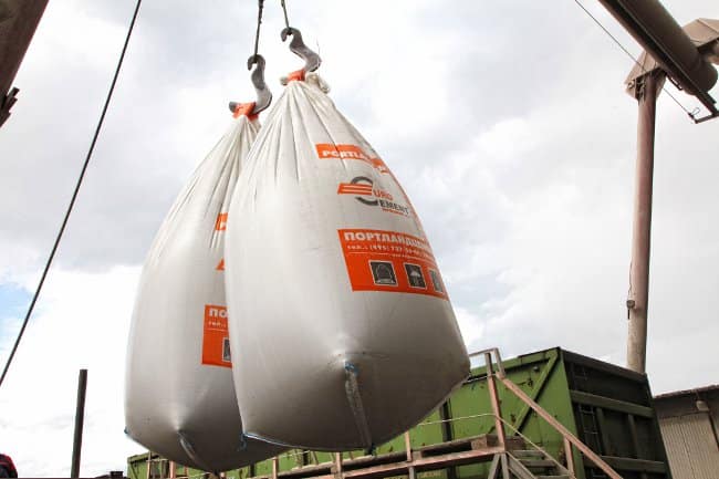 Цемент в биг-бегах – самый удобный, экономичный и оптимальный вариант фасовки материала при условии выполнения серьезных ремонтно-строительных работ. Бег-бэг представляет собой плотный мягкий контейнер внушительного размера с 1-4 стропами. Минимальный вес материала в биг-бэге составляет 400-1000 килограммов, максимальный – 3000.